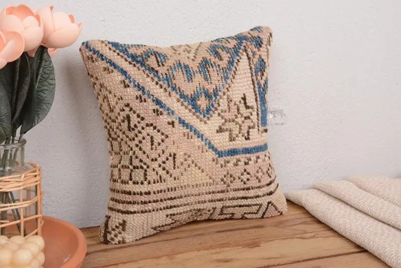 Beige & Bronze besticktes Wurfkissen, Vintage Blumenkissen