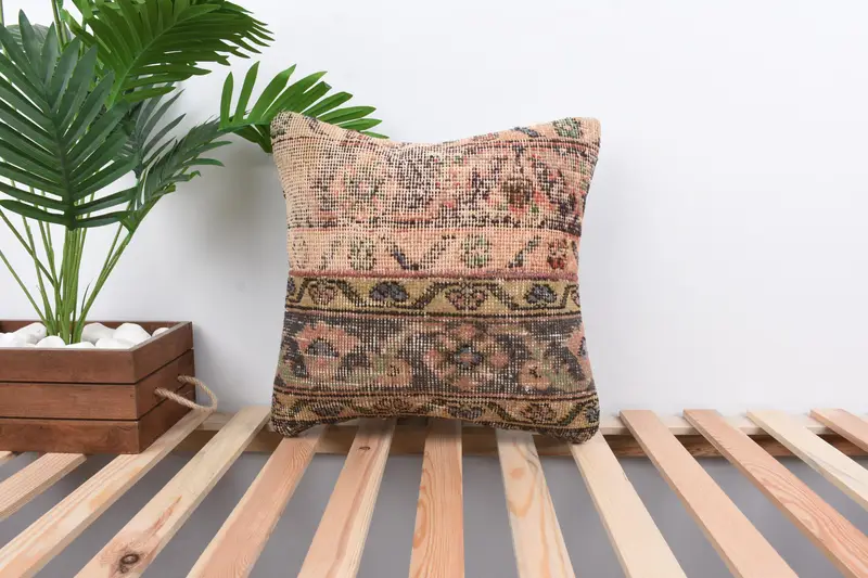 Orange & Beige Patchwork-Wurfkissen, 16x16 besticktes Kissen