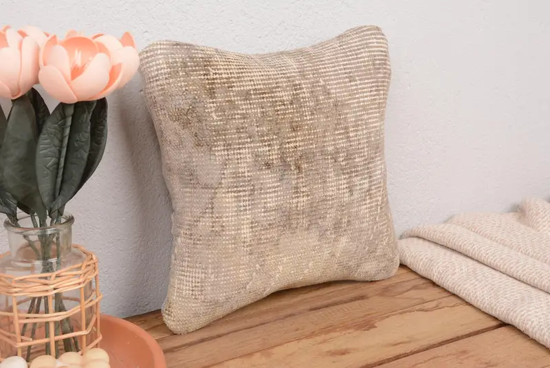 Beige & braun floral besticktes Wurfkissen, Vintage Kissen