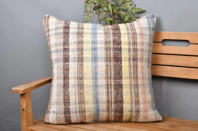 Modernes gestreiftes Kelim-Wurfkissen, besticktes Vintage-Kissen, 24x24