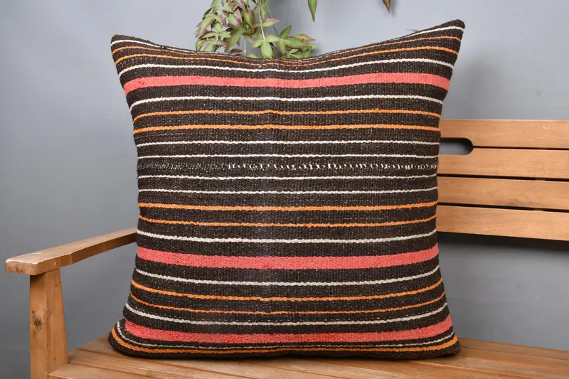 Braun und rosa gestreiftes Kissen, besticktes Kissen