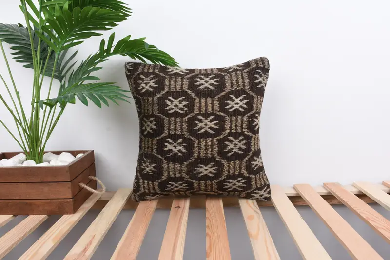 Braun & Beige besticktes Wurfkissen, quadratisches Kissen