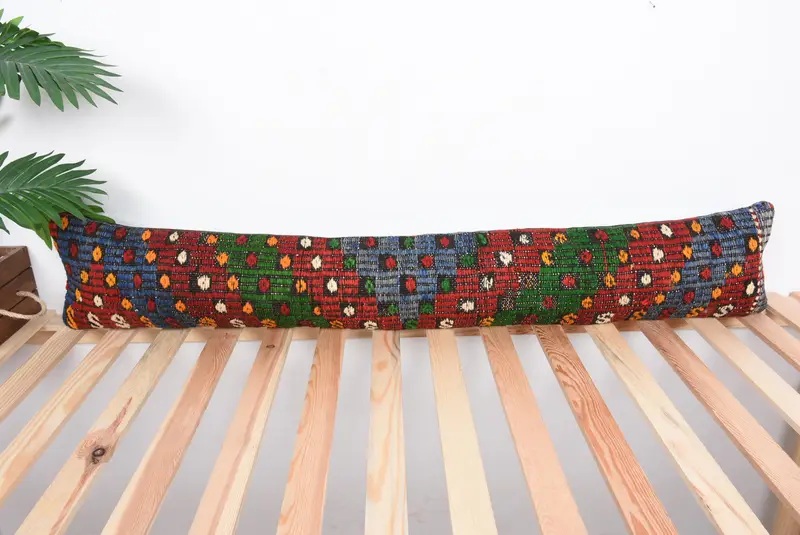 Lila & grünes geometrisches Wurfkissen, Vintage besticktes Kissen