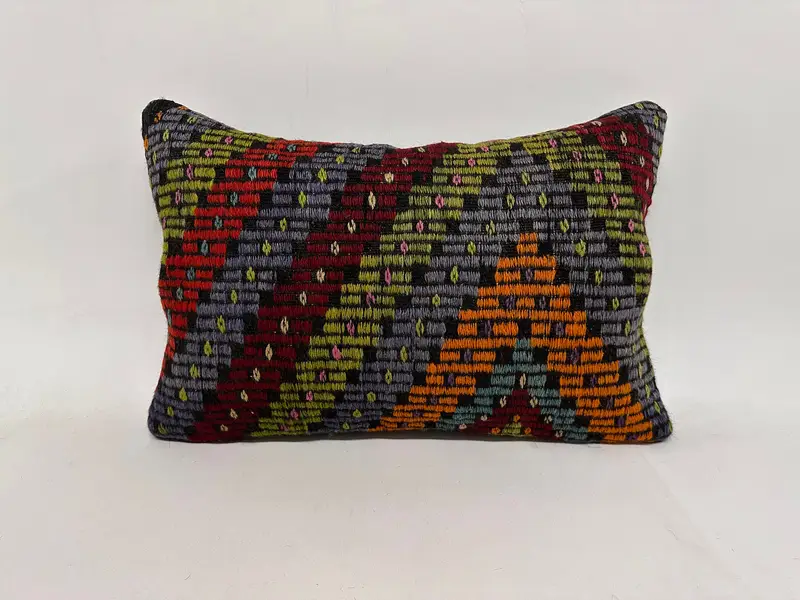 Blaues und orangefarbenes Southwestern-Stickkissen, vielseitiges 16x24-Wurfkissen