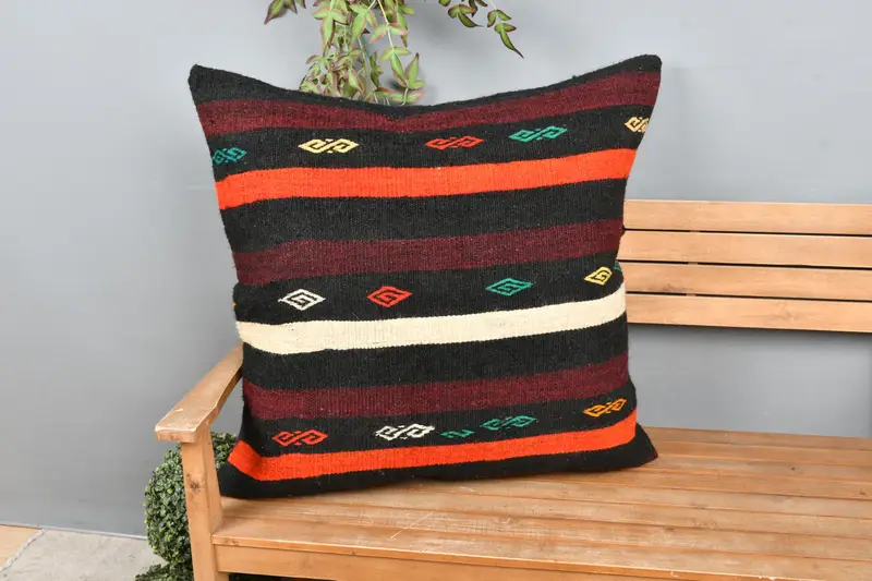 Rot-braunes geometrisches Kissen, handgefertigtes besticktes Kissen