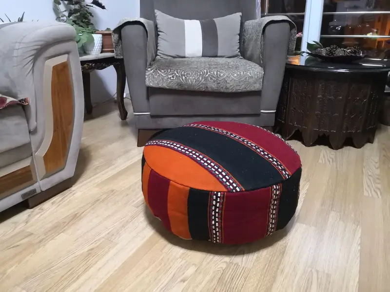 Rot & Schwarz gestreiftes Wollkissen, Vintage Kreiskissen