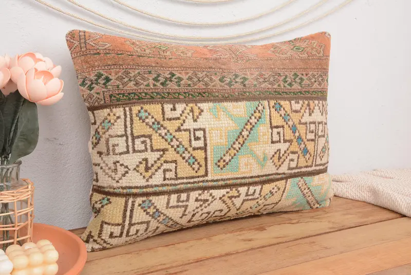 Handgefertigtes Patchwork-Kissen in Beige und Grün, Vintage-Rechteck-Wurfkissen