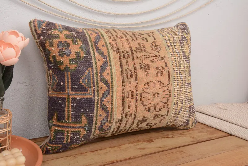 Braunes und beiges Patchwork-Kissen, 16x24 besticktes Wurfkissen