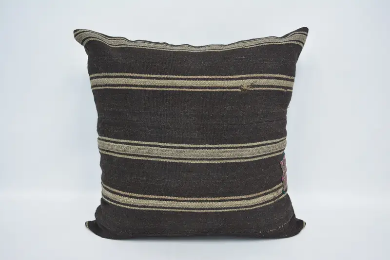Handgefertigte gestreifte Kissenhülle, 32x32 besticktes Wurfkissen