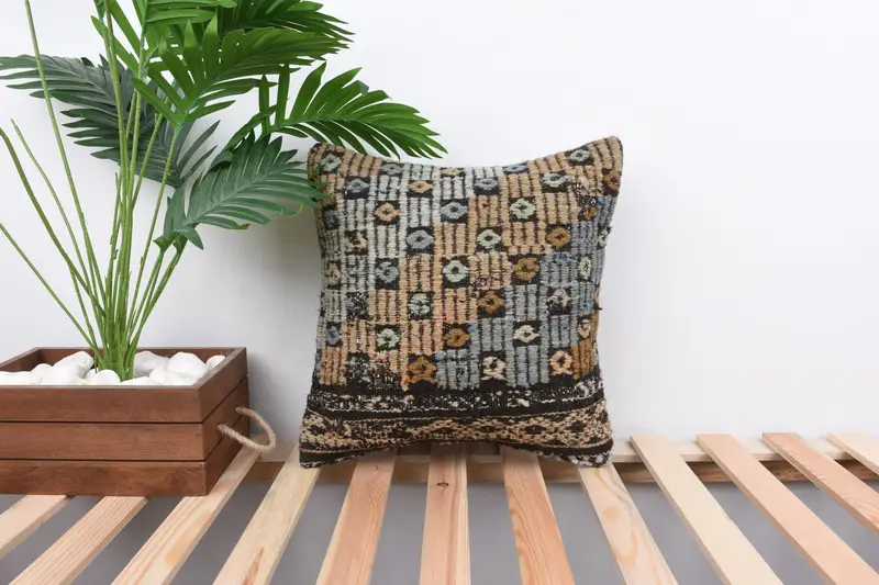 Grau & Orange Southwestern besticktes Wurfkissen, handgemachtes Leinenkissen