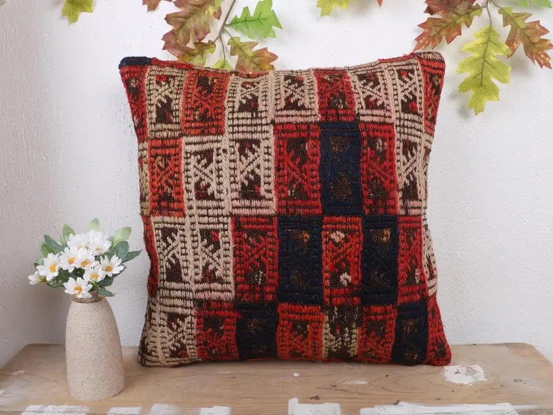 Rot & Bronze besticktes Wurfkissen, vielseitiges 18x18 Kissen