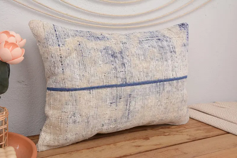 Blau & Bronze besticktes Wurfkissen, Vintage Patchwork Kissen