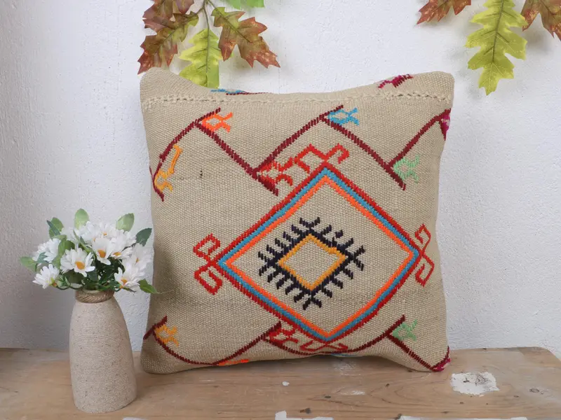 Beigefarbenes Southwestern-Wurfkissen, 16x16 besticktes Vintage-Kissen