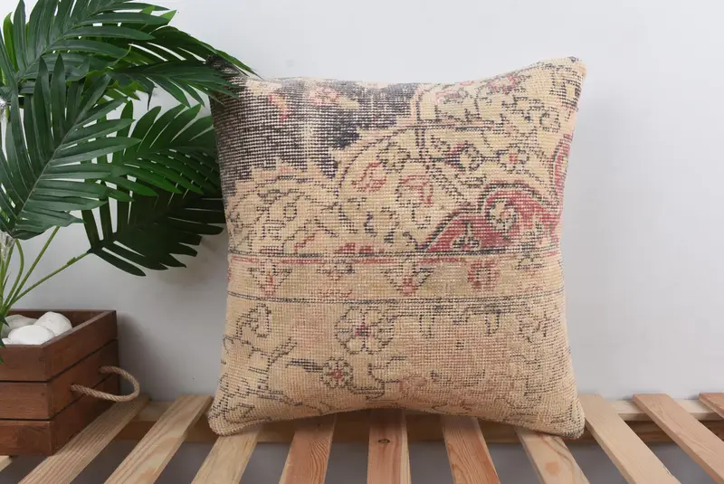 Beigefarbenes Kelim-Wurfkissen im Südwesten, besticktes Vintage-Kissen