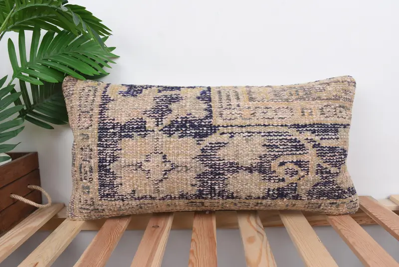 Besticktes Southwestern Blue & Beige Wurfkissen, handgemachtes Leinenkissen
