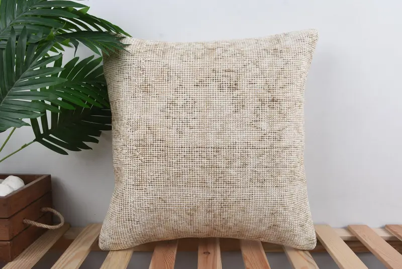 Beigefarbenes, besticktes Kissen im Südwesten, Vintage-Kissen mit Reißverschluss