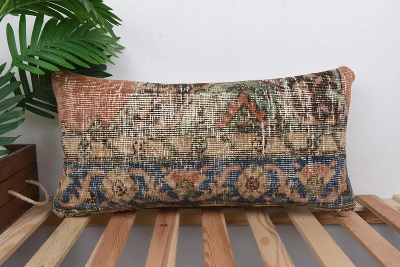 Blaues und oranges Southwestern-Wurfkissen, handgefertigtes rechteckiges Kissen