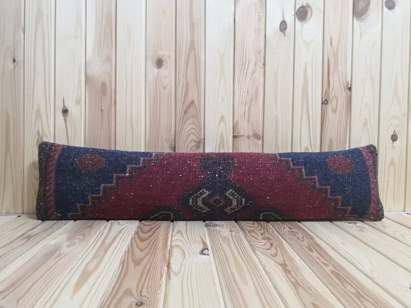 Handgefertigtes Wollkissen, rotes geometrisches Vintage-Rechteckkissen