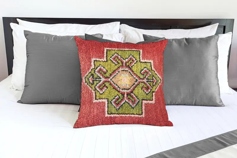 Handgefertigtes besticktes Southwestern-Wurfkissen, rot-grünes Bolsterkissen