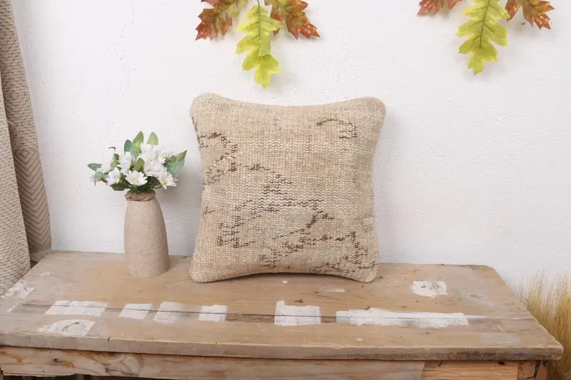 Beige & braunes südwestliches besticktes Wurfkissen, handgefertigtes Vintage-Kissen
