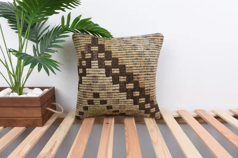 Braunes, orange besticktes Wurfkissen, 16x16 Dekokissen