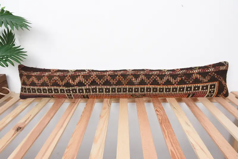Handgefertigtes geometrisches Kissen in Braun und Orange, Vintage-Rechteckkissen