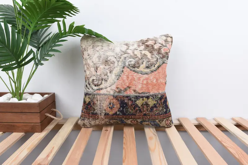 Beige & braunes Patchwork-Wurfkissen, handgefertigtes besticktes Kissen