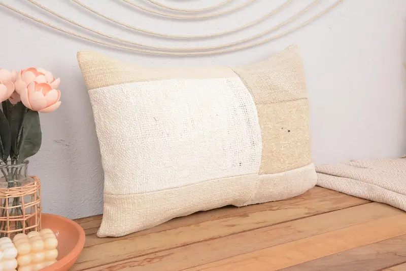 Handgefertigtes besticktes Kissen, 16x24 Vintage Patchwork-Kissen