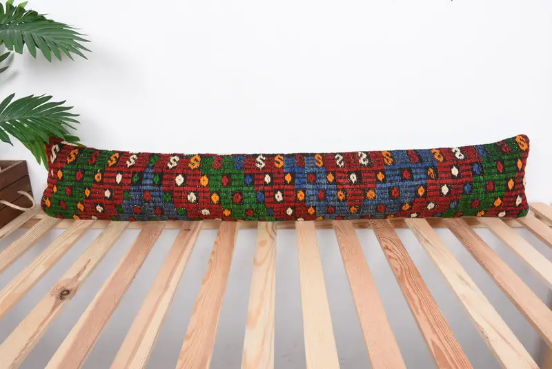 Rot & Grün besticktes Wurfkissen, handgemachtes geometrisches Kissen