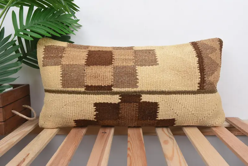 Beige & braunes Patchwork-Wurfkissen, handgefertigtes besticktes Kissen