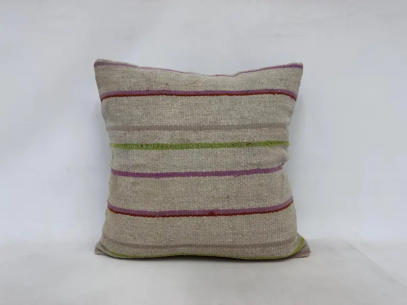 Beige & Lila gestreiftes Wurfkissen, Vintage besticktes Kissen