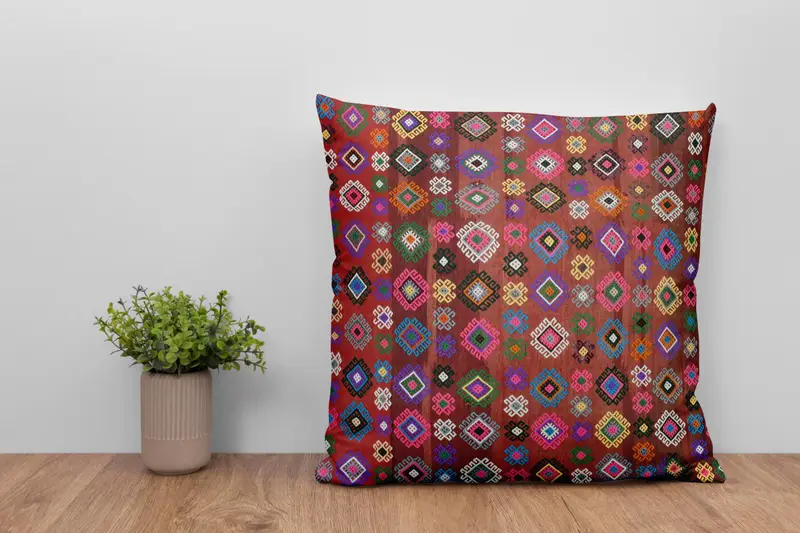 Handgefertigtes besticktes Kissen, Vintage-Chenille-Kissen in Rot und Rosa