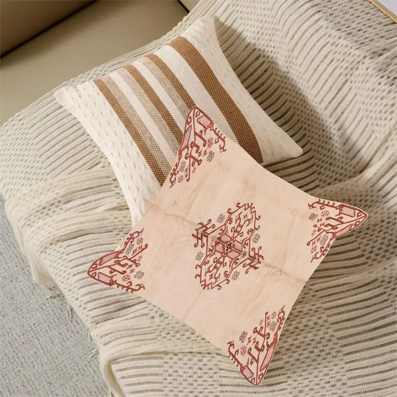 Handgefertigtes besticktes Kissen, Vintage Beige Braunes Kissen