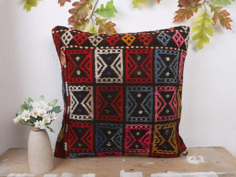 Rot & Bronze besticktes Wurfkissen, geometrisches Vintage-Kissen