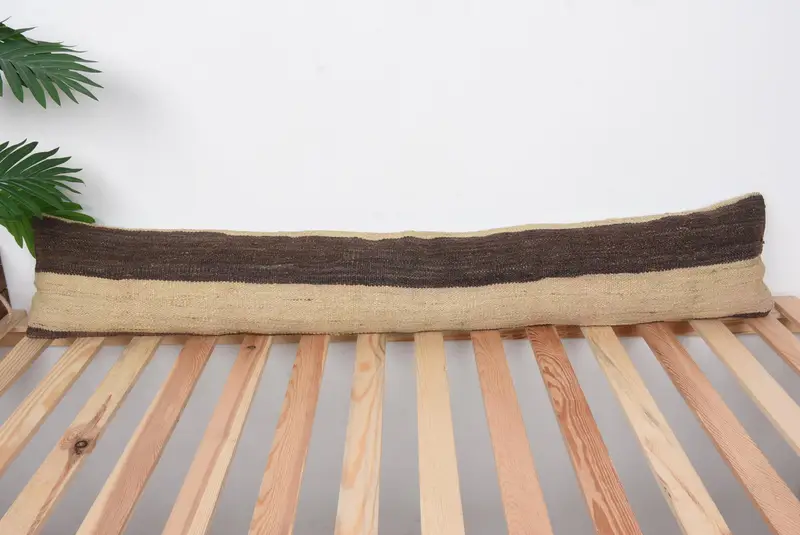Besticktes beige-braun gestreiftes Kissen, vielseitiges 8x42 Wurfkissen