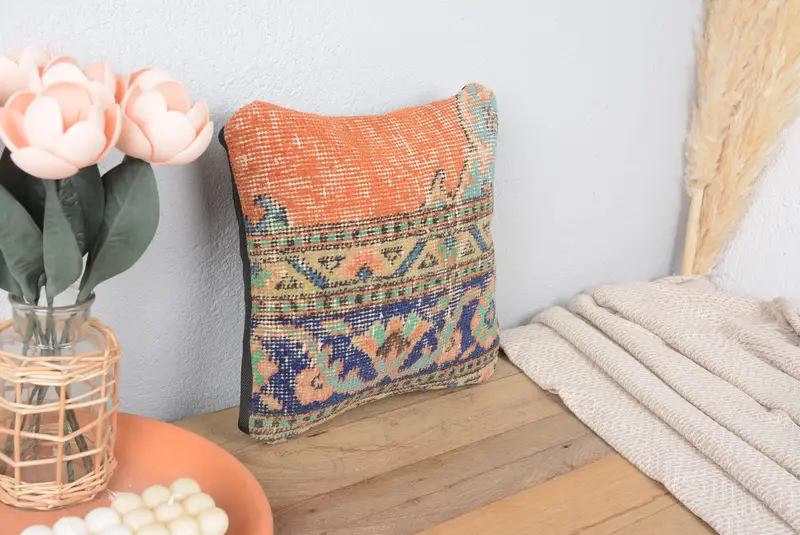 Orange & Bronze besticktes Wurfkissen, 12x12 Vintage Kissen