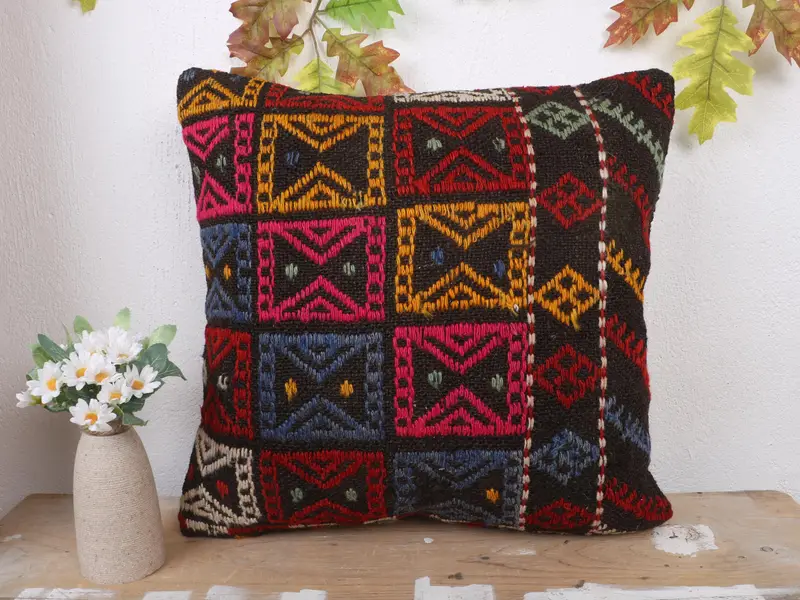 Rosa geometrisches Kissen, Vintage besticktes Kissen
