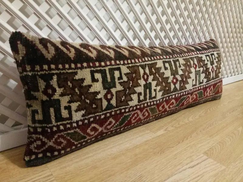 Handgefertigtes Wollkissen, braun und rot gestreiftes Dekokissen