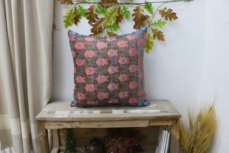 Rot & Orange besticktes Wurfkissen, Vintage Quadratisches Kissen