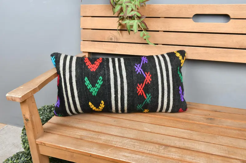 Handgefertigtes gestreiftes Kissen, 12x24 besticktes Kissen mit Vintage-Charme