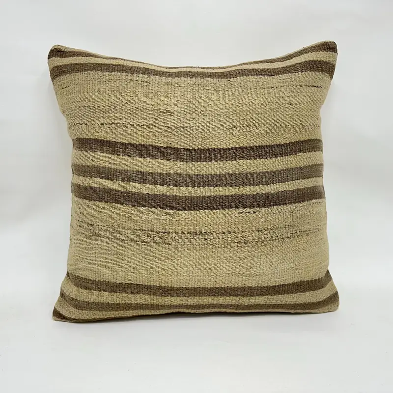 Beige und braun gestreiftes Wurfkissen, 24x24 besticktes Kissen