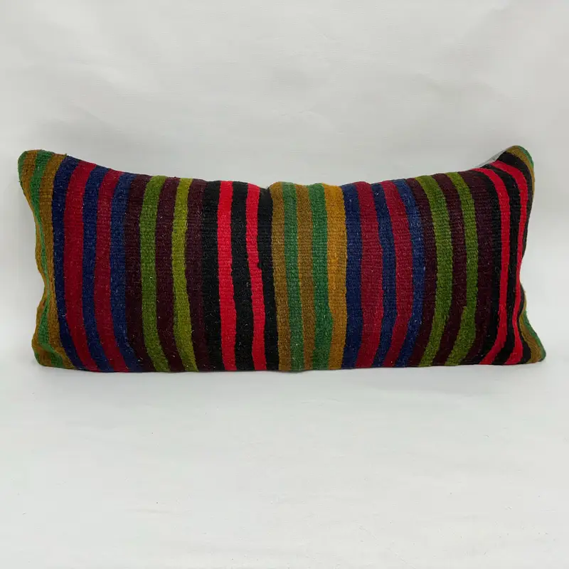 Grün & Bronze gestreiftes Wurfkissen, 16x36 besticktes Kissen