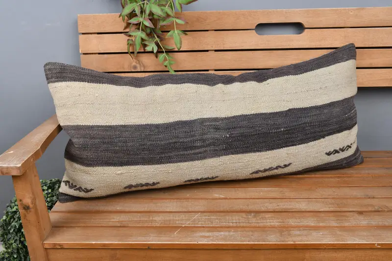 Beige und braun gestreiftes Kissen, 16x36 besticktes Wurfkissen