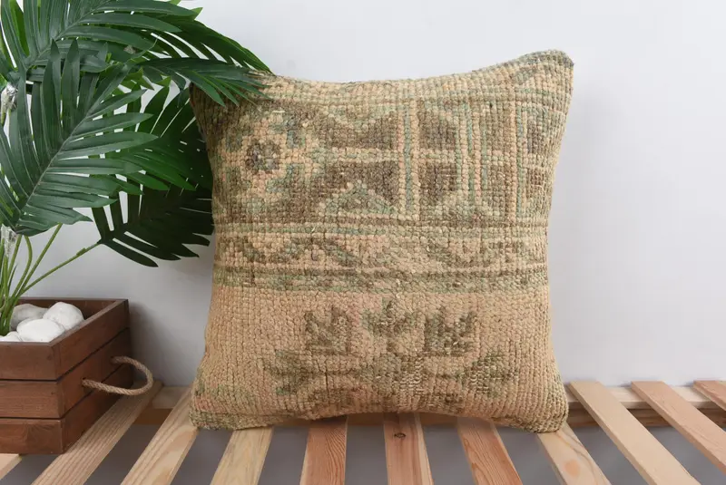 Beigefarbenes Southwestern-Wurfkissen, 18x18 besticktes Vintage-Kissen