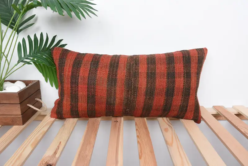 Braun & rot gestreiftes Kissen, 12x24 besticktes Wurfkissen
