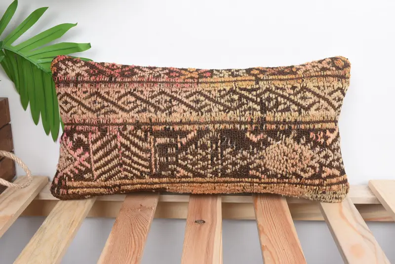 Handgefertigtes, besticktes Kissen im Südwesten, Vintage-Kissen in Beige und Braun