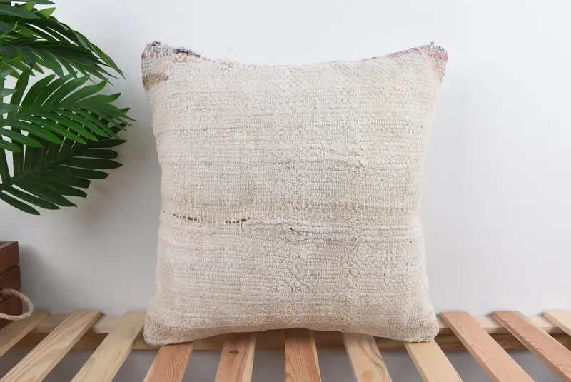 Beige besticktes Southwestern-Wurfkissen, handgefertigtes Vintage-Kissen