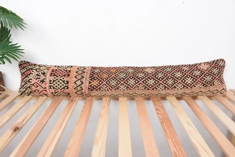 Gesticktes geometrisches Kissen in Rosa und Orange, Vintage-Kissen