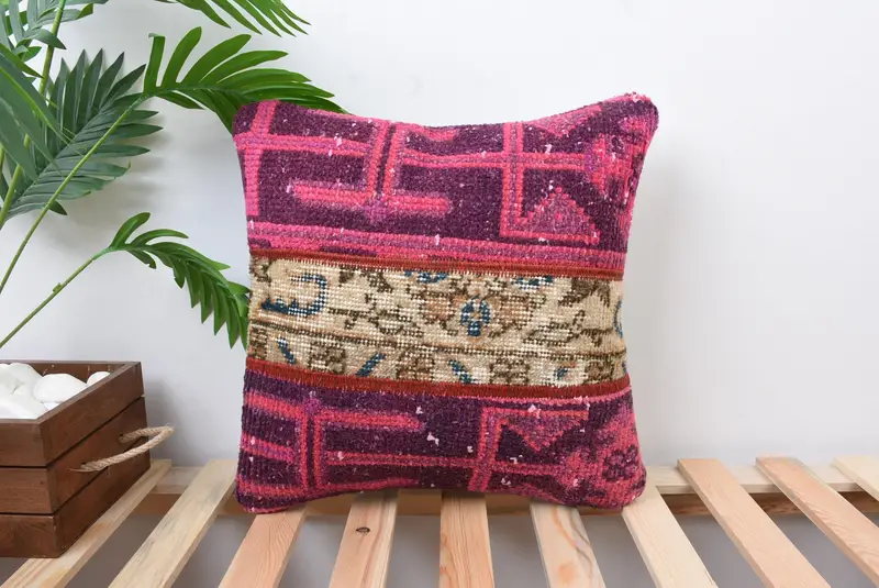 Rosa, beige Patchwork-Wurfkissen, 16x16 besticktes Vintage-Kissen