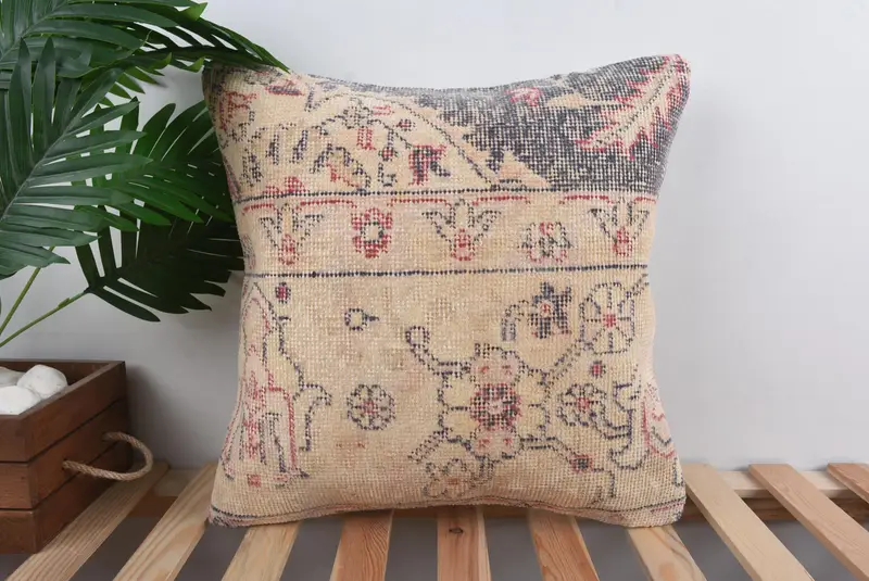 Beigefarbenes Southwestern-Wurfkissen, 18x18 besticktes Vintage-Kissen
